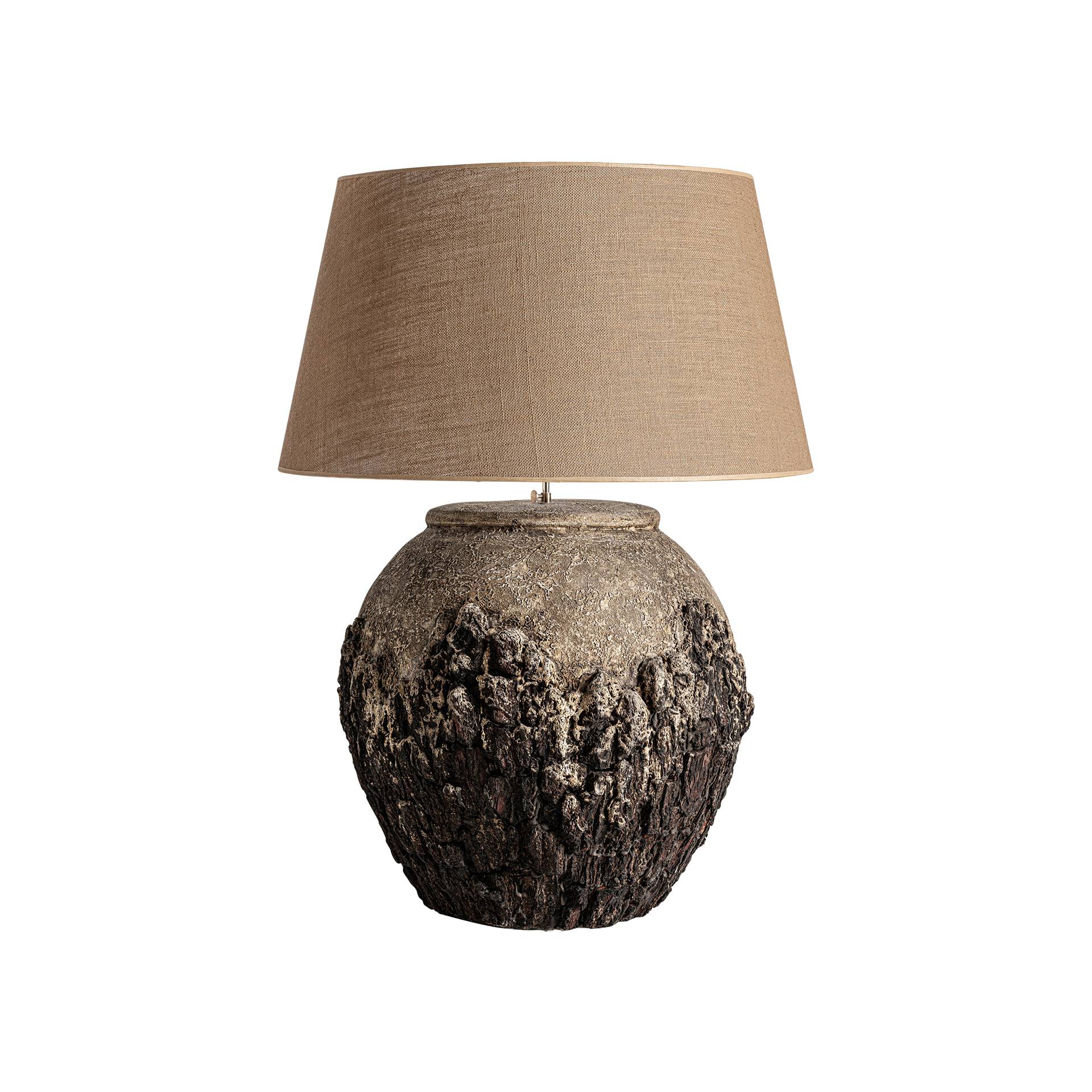 Lámpara de sobremesa, en color tonos en marrón envejecido, de estilo vintage. Fabricado en cerámica, combinado con yute.