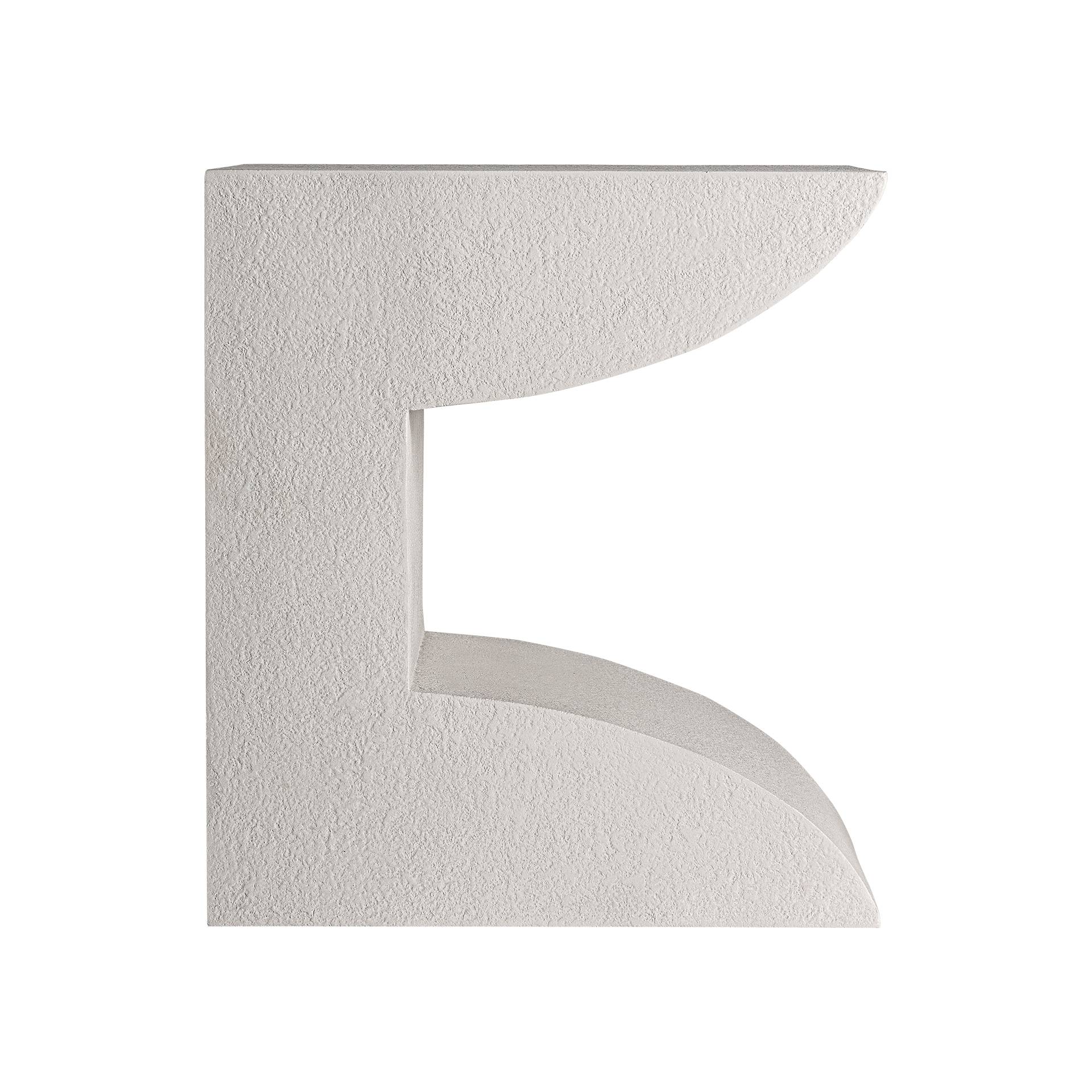 Mesa auxiliar trim, de estilo art deco. Fabricado en cemento, en color blanco roto, combinado con madera dm.